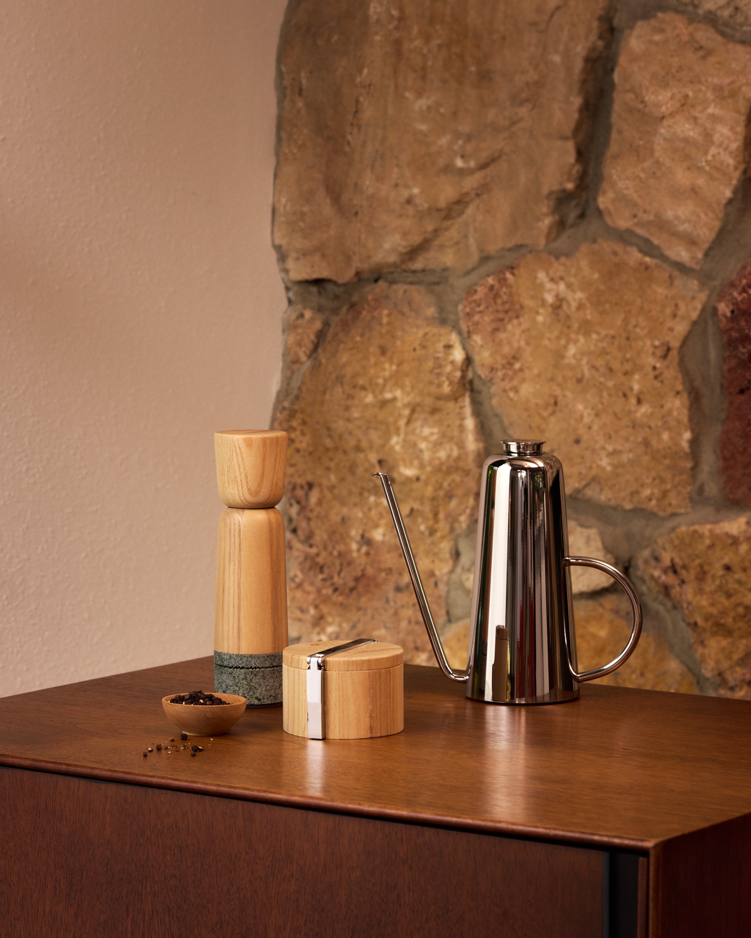 Upgrade your essential kitchen tools with our Stone Pepper Mill, Stash Salt Cellar, and Oil Can. Each piece has thoughtful features designed to enhance your cooking experience. Our Stone Pepper Mill maximizes output by grinding pepper using a patented cut stone pattern. Plus, pepper dispenses from the side of the grinder, leaving no traces on your countertop. The sharp spout of our Oil Can ensures a steady pour and helps prevent drips by cutting through the oil. Completing the set is our Stash Salt Cellar, which includes a convenient tab that allows you to lift the lid with your knuckle when your hands are dirty.